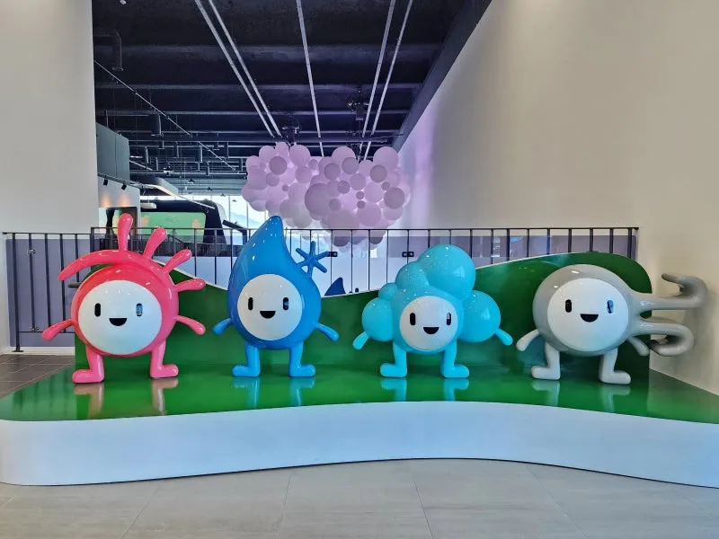 과학관 입구에서 방문객을 반기고 있는 국립충주기상과학관 캐릭터는 썬이와 방울이, 구름이, 풍이입니다.
