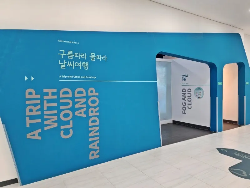1층 상설전시관 2간에는 ‘구름따라 물따라 날씨여행’이라는 주제로 안개와 구름, 관측기구, 비와 눈에 대해 자세히 알 수 있는 공간이 있고 그 밖에 기상미디어실과 4D영상관, 기상청24시, 북카페가 있습니다.