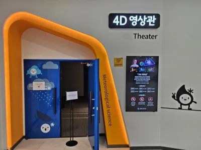 4D영상관에서는 점심시간을 제외한 매시 40분에 영상을 상영하고 있습니다. 기상청24시 코너는 관측된 자료가 일기예보로 전달되기까지의 과정을 보여주며 직접 기상캐스터가 되어 뉴스 ‘오늘의 날씨’를 진행하는 체험도 할 수 있습니다.