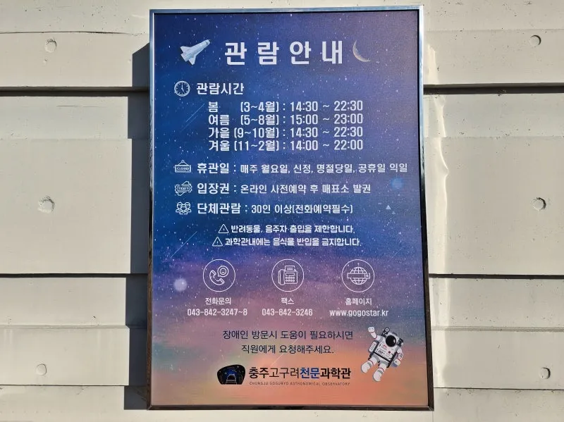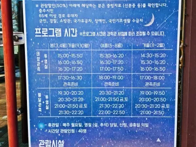 천문과학관 운영 시간은 사정상 변경될 수 있으며 기상 악화에 따라 관측이 어려울 수 있으니 방문하기 전 미리 확인해 보시기 바랍니다.