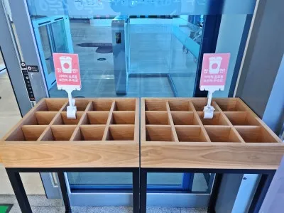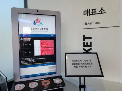 주차를 하고 입구로 들어서면 관람권을 발급할 수 있는 키오스크가 있고 음료보관대를 거쳐 바로 2층으로 진입할 수 있습니다.
