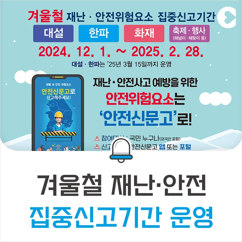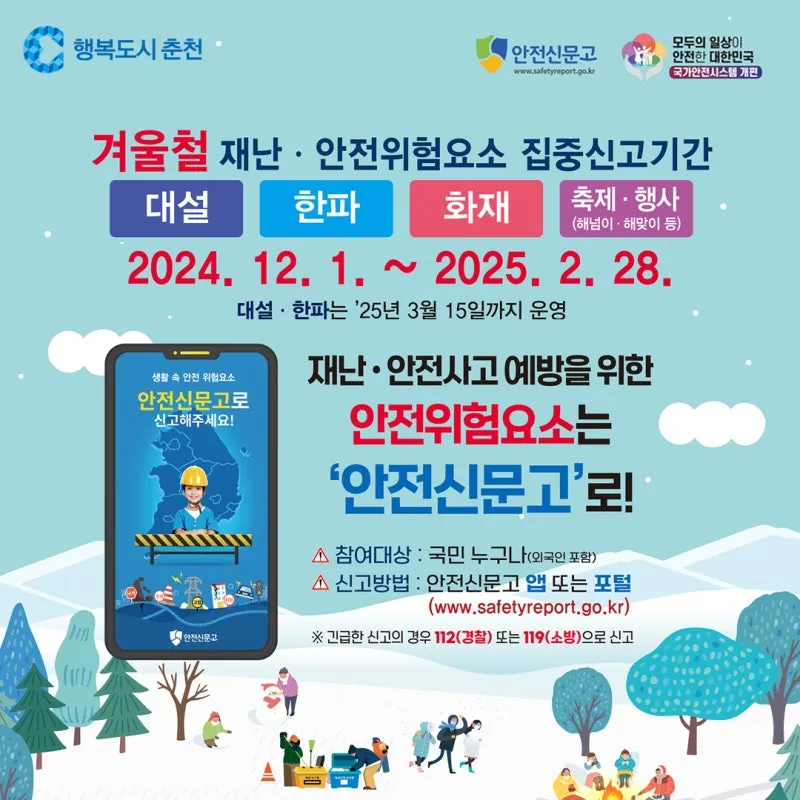 도로 제설 미흡, 제설함 관리 불량, 시설물 붕괴 위험 등