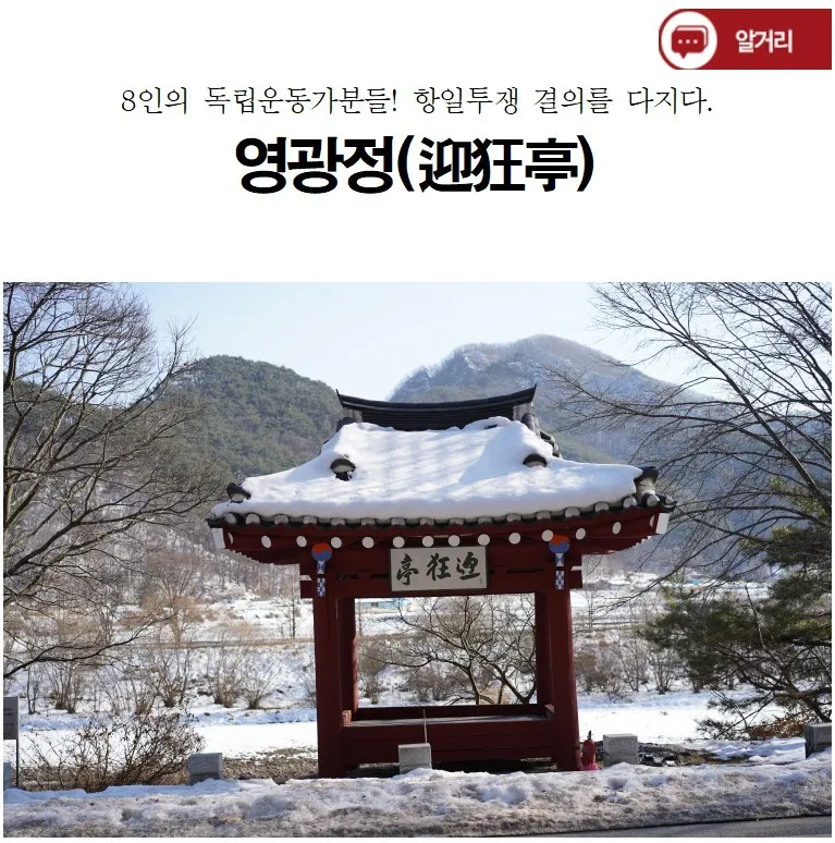 ‘영광정(迎狂亭)’ ; 8인의 독립운동가들! 항일투쟁 결의를 다지다.
