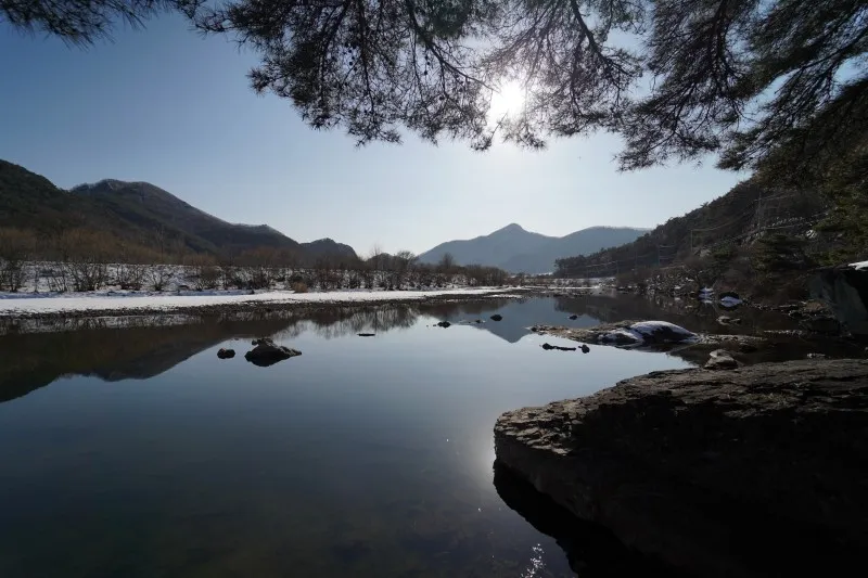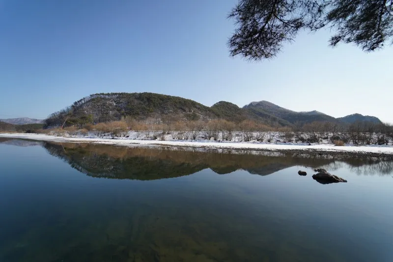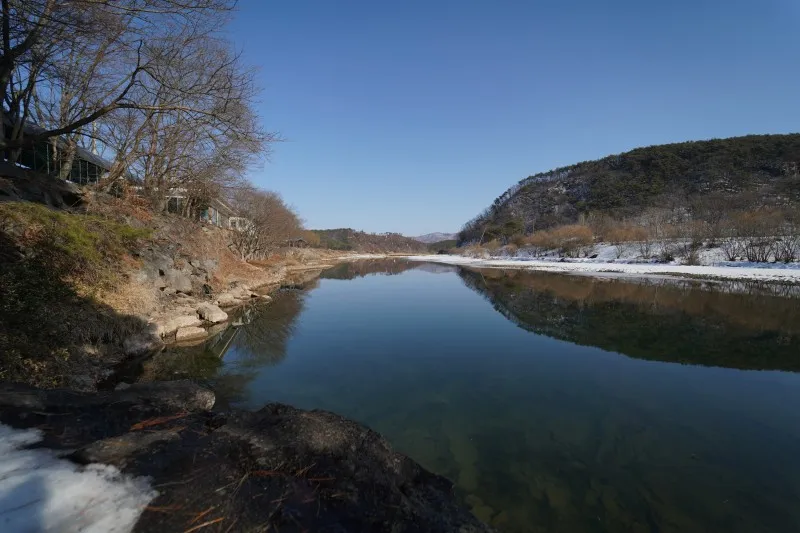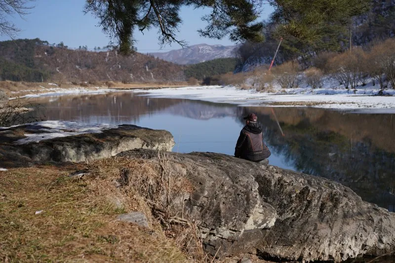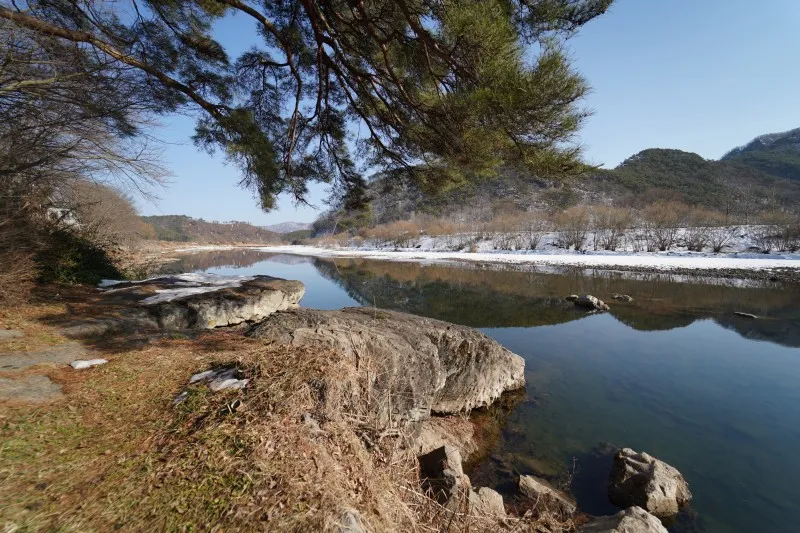 방문했을 때 뜻밖에도, 강 가운데 고고한 자태로 서 있는 한 마리의 학과 그와 묵언의 대화를 하는 듯한 어르신 한 분을 만났다.