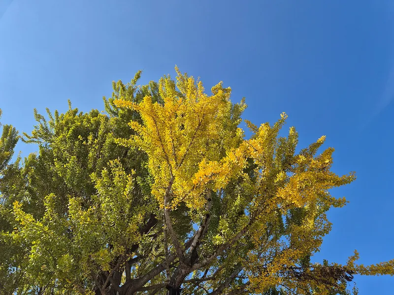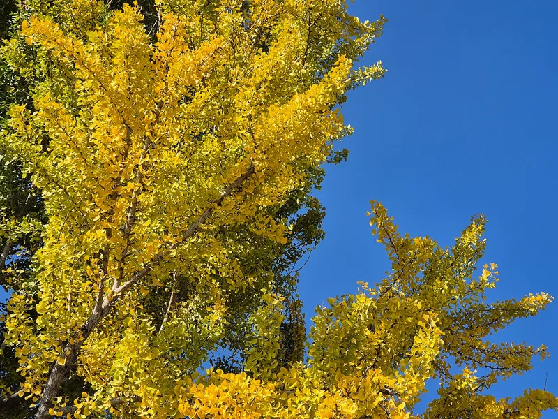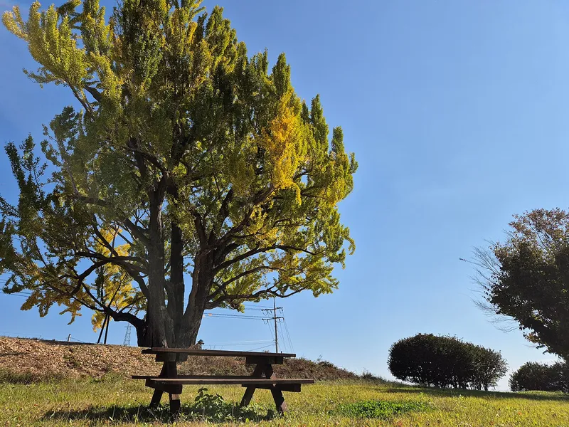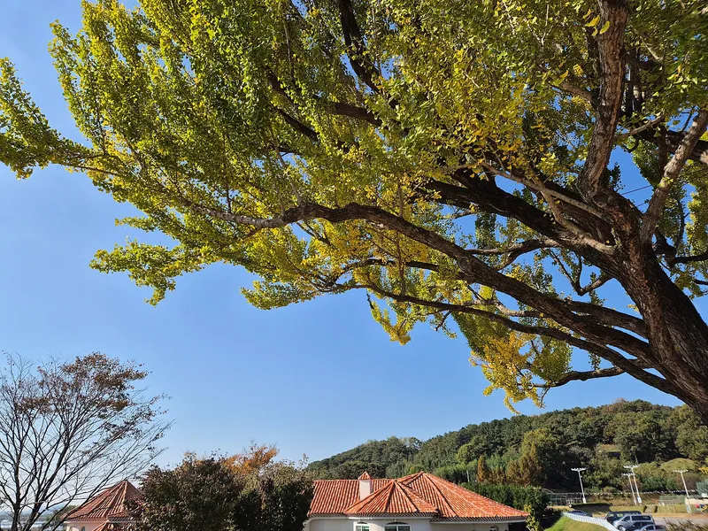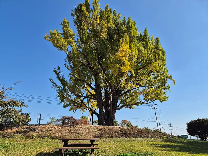 은행나무 아래에는 평상이 놓여 있습니다. 이곳에 앉아 위를 올려다보면 노랗게 물든 은행잎 사이로 햇빛이 비치는 모습을 감상할 수 있습니다. 평상에 앉아서 여유롭게 시간을 보내다 보면 가을의 아름다움을 온전히 느끼며, 노란빛으로 물든 가을의 낭만도 느껴보시길 바랍니다.