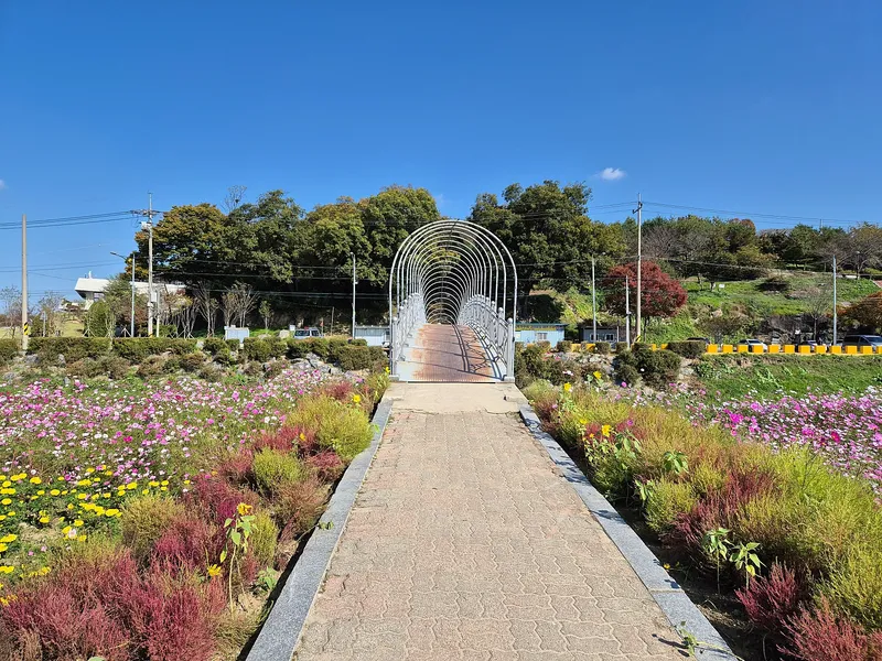 먼저, 코스모스가 예쁘게 피어나기로 유명한 강경포구입니다. 논산에서 가을 풍경을 가장 아름답게 느낄 수 있는 명소로도 손꼽히는 곳입니다. 가을이 되면 알록달록한 코스모스의 꽃물결로 물들어가는데 매년 많은 분들에게 사랑을 받고 있는 명소입니다. 강경 옛길과 가까워서 같이 둘러보기에 좋은 곳입니다.