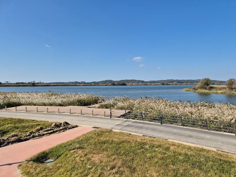강경포구 산책로를 따라서 걸어봅니다. 산책로를 따라서 걷다 보면 황금빛 억새가 넘실거리는 갈대숲의 모습도 볼 수 있습니다. 이 갈대숲은 금강과 어우러져서 감성적인 분위기를 만들어냅니다. 특히나 오늘이 질 때쯤 갈대숲의 매력이 더해져서 잊지 못할 순간을 경험할 수 있습니다.