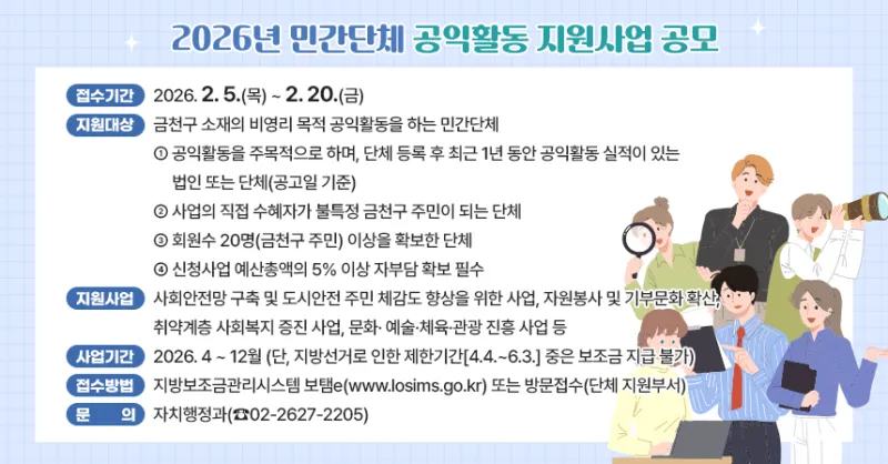 - 회원수 20명(금천구 주민) 이상을 확보한 단체