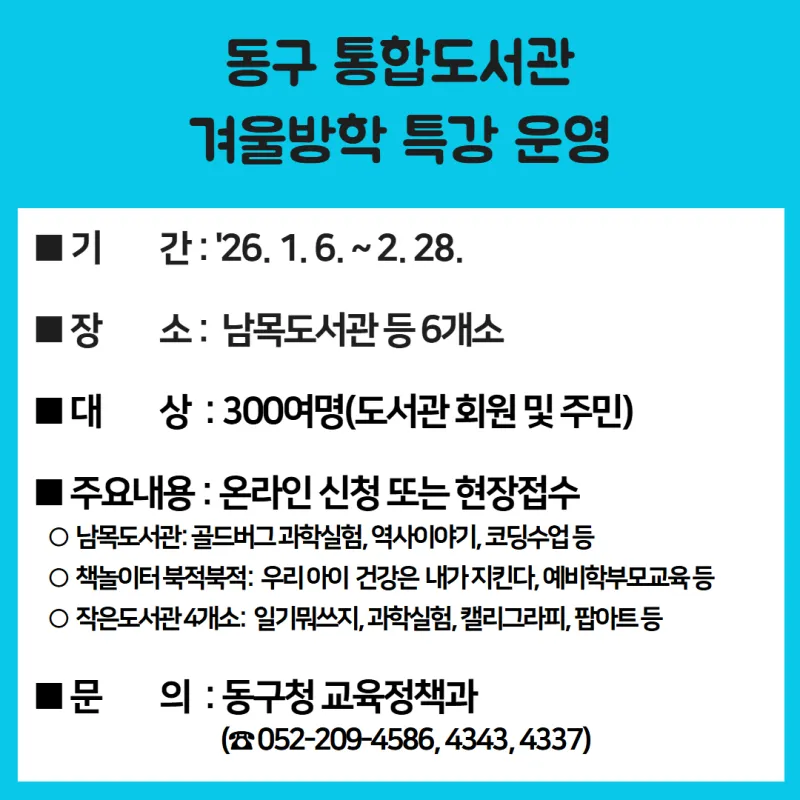 ▶ 동구 통합도서관 겨울방학 특강 운영