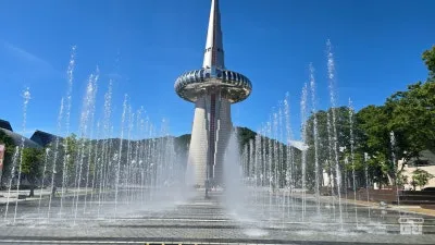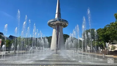 꿈돌이하우스 2호점은 한빛탑 앞 음악분수광장의 측면에 새롭게 마련되었는데요. 역시 음악분수가 있는 한빛탑의 모습은 낮에 봐도 밤에 봐도 한여름의 더위를 식혀주기에 충분한 것 같아요. 시원한 물줄기가 인상적인 음악분수와 보며 먹는 꿈돌이 라면은 그야말로 '꿀맛'이랍니다.