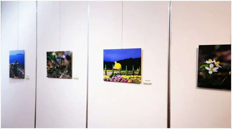 엄청난 축하 화환과 화분들이 전시장 로비에 가득합니다