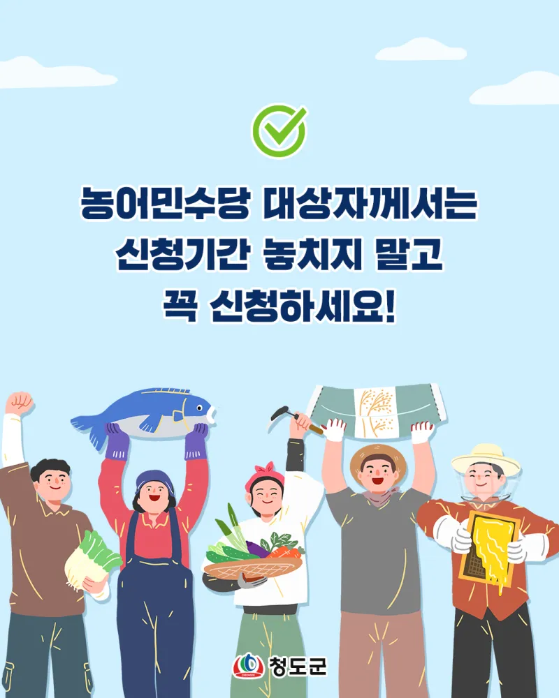 2025 청도군 농어민수당 신청 안내, 신청기간 및 지원자격 확인 후 놓치지 마세요!