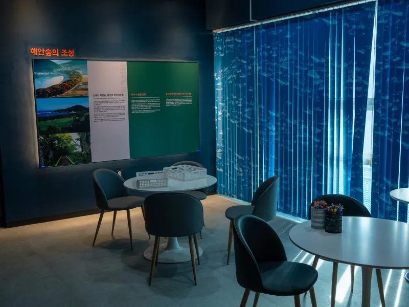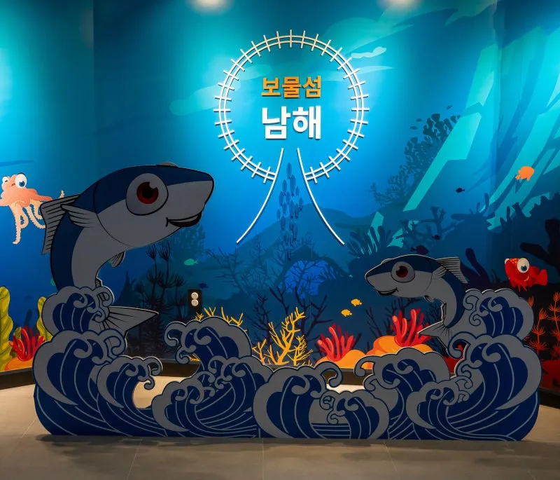 죽방렴 홍보관 한곳에는 포토존과 앉아서 쉴 수 있는 공간도 마련되어 있었어요.
