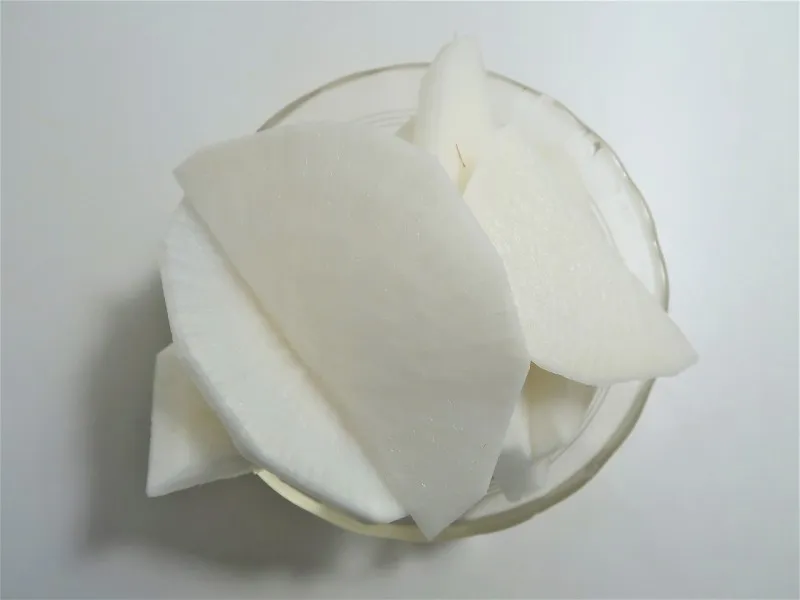 무는 반달썰기를 합니다. 생선 두께와