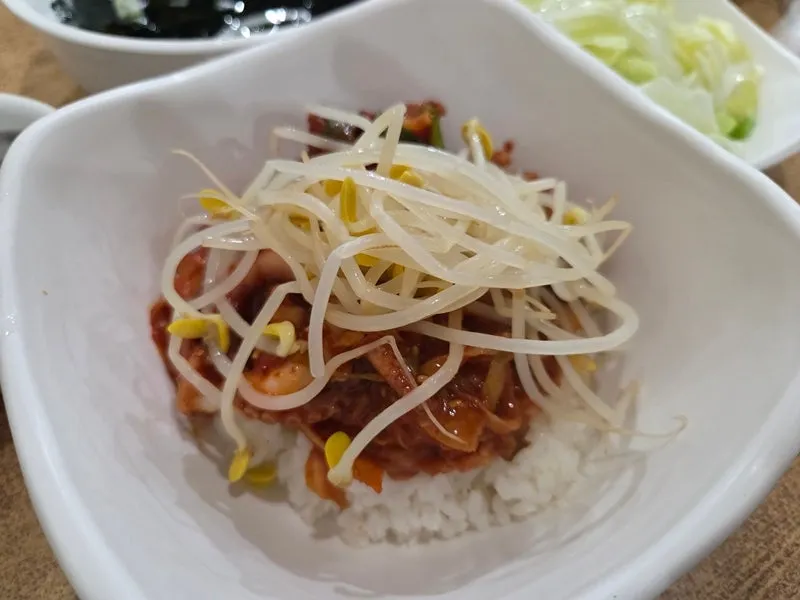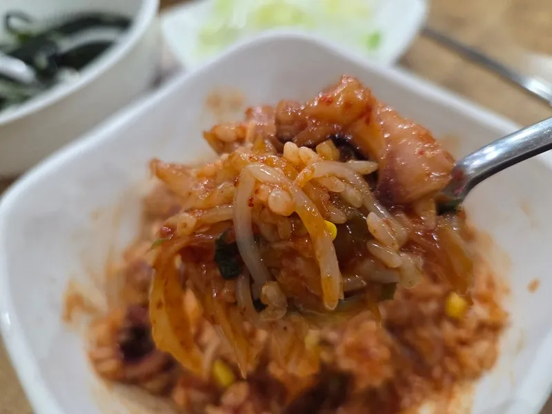 하얀 쌀밥에 빨간🔥 낙지볶음에 콩나물을 넣어서