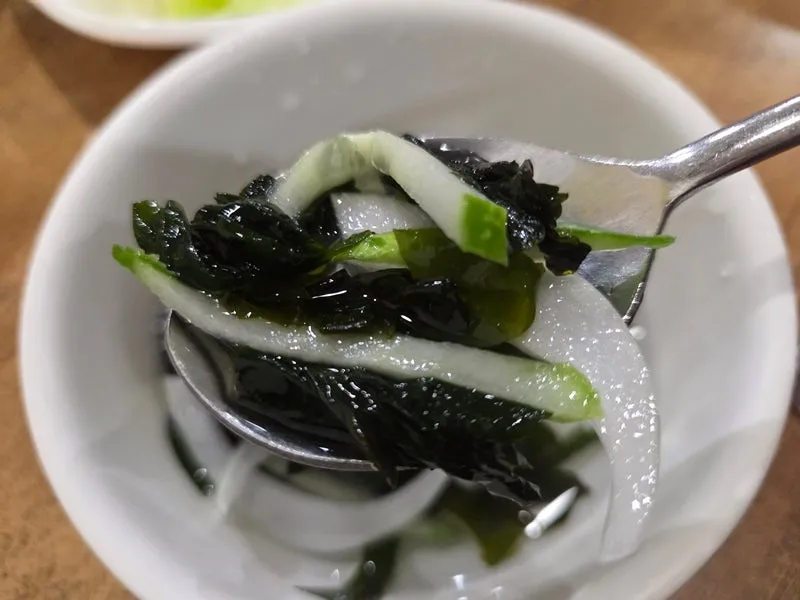 기본 찬으로 나오는 미역 오이냉국은