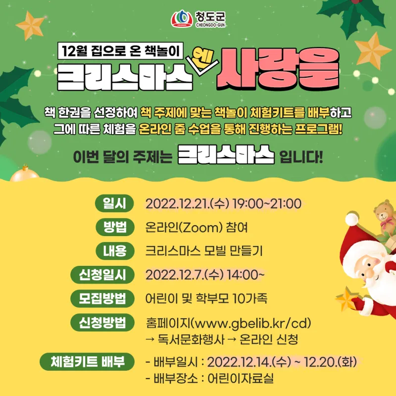 [소식;반시] 12월 집으로 온 책놀이 크리스마스엔 사랑을 ::: 청도 도서관에서 진행하는 크리스마스 행사에 참여해 보세요!