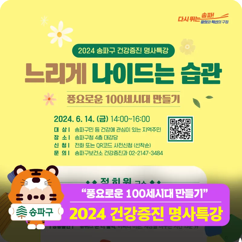 "아산병원 노년내과 정희원 교수(a.k.a. 저속노화샘) 초청" 2024 송파구 건강증진 명사특강