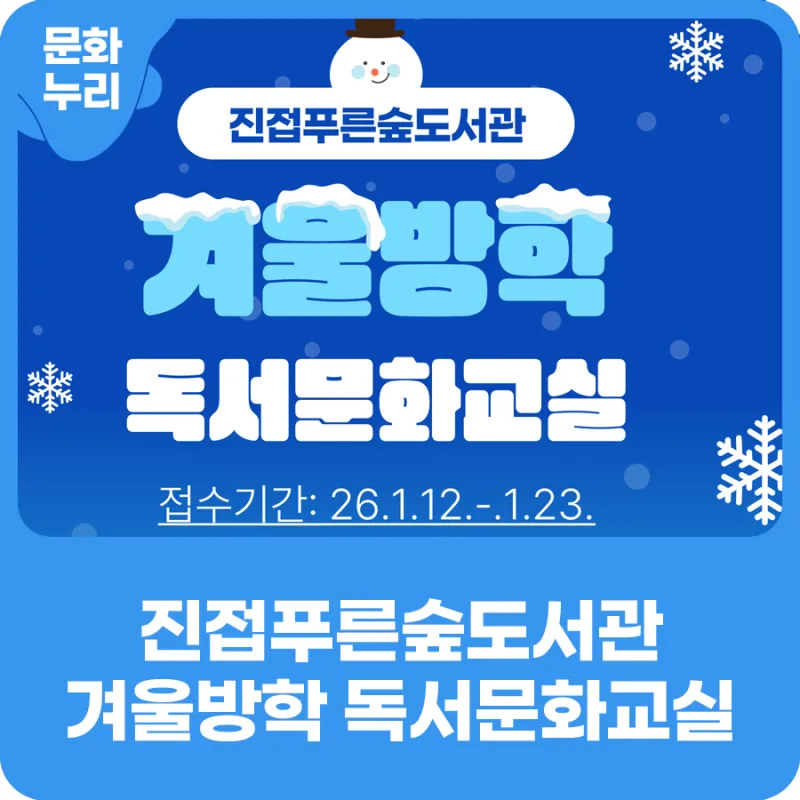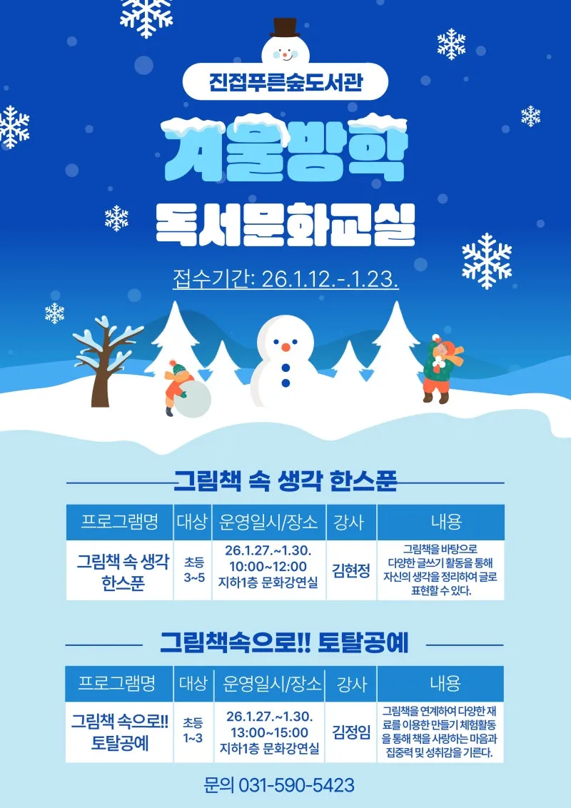 진접푸른숲도서관 '겨울방학 독서문화교실' 함께해요✨