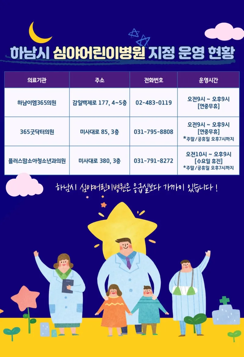 하남이엠365의원 / 365굿닥터의원 / 플러스맘소아청소년과의원(플러스맘은 명절당일 휴무)