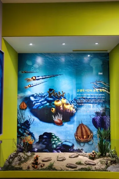 화석 전시실에서는 고생대의 신비로운 흔적을 마주하며