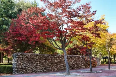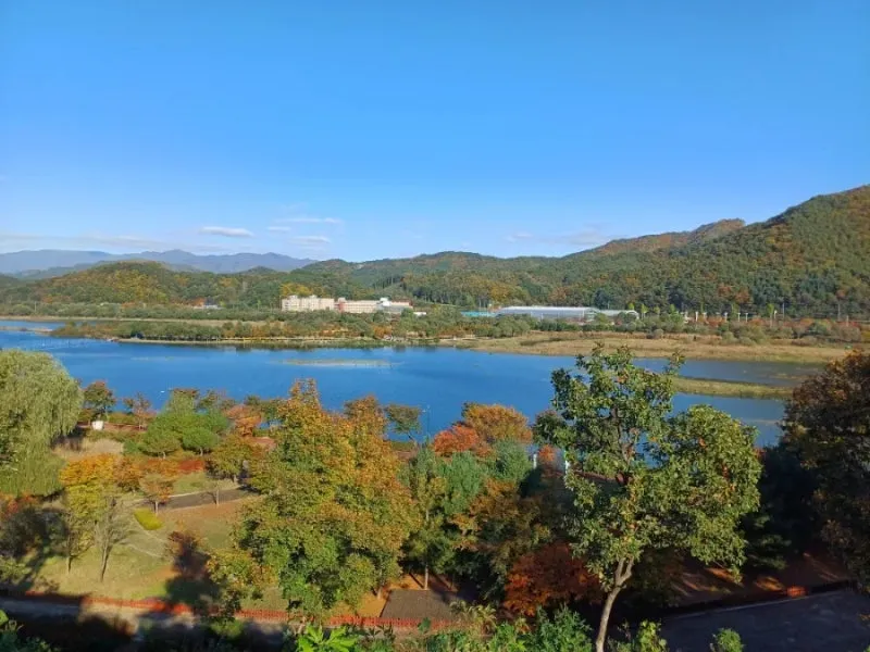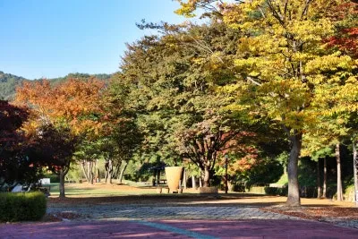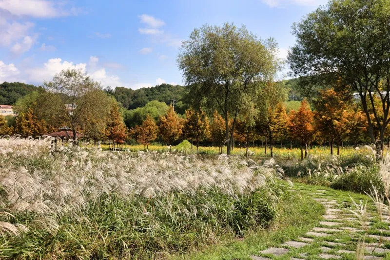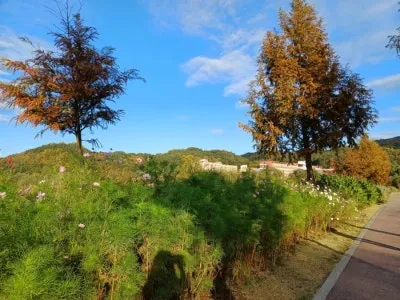 파란 하늘 아래 단풍과 꽃들을 감상하며 산책을 즐기기에 완벽한 장소!