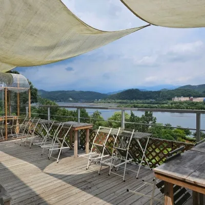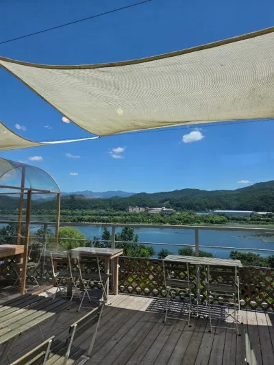또 다른 야외 테이블에서는 파로호를 내려다볼 수 있어요🌊