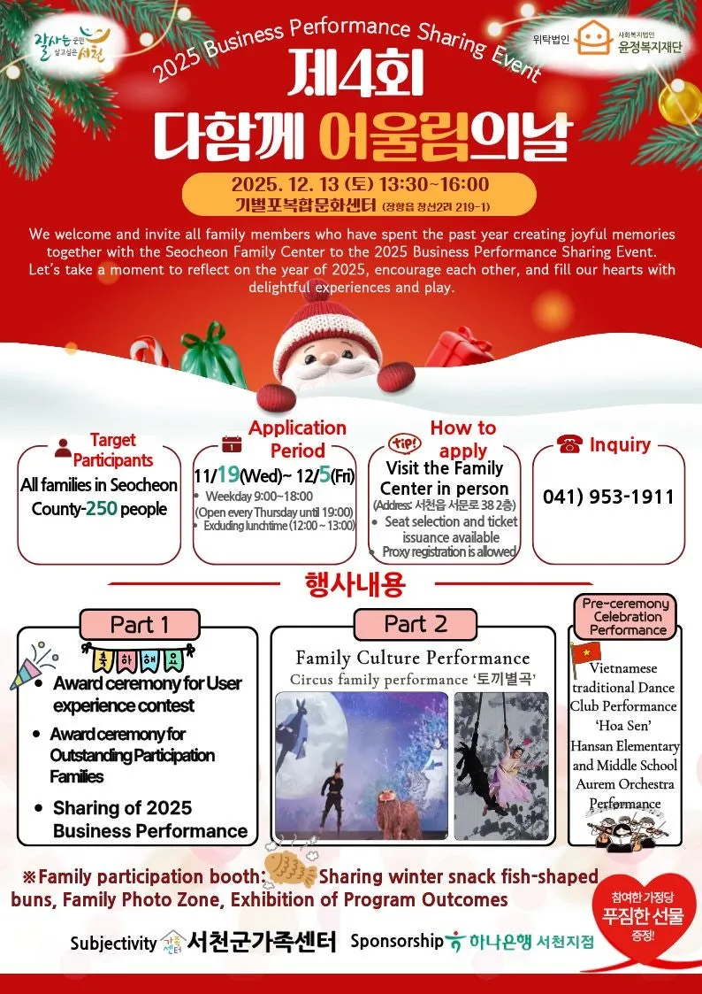 올 한 해를 돌아보며 서로를 격려하고, 즐거운 체험과 공연으로 마음을 채우는 시간을 함께해요! ????✨
