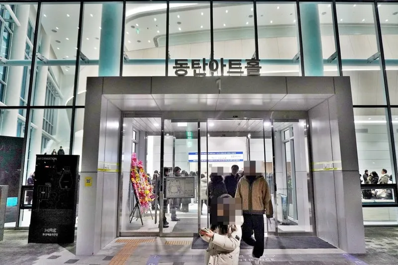 공연 시작까지 1시간을 앞둔 시간 동탄아트홀이 화려합니다. 1,450석 규모의 화성예술의전당 대공연장입니다. 제야콘서트는 화성시민들을 대상으로 전석 무료로 진행되었습니다. 12월 12일 선착순으로 티켓 예매가 진행되었었는데 불과 5분 만에 매진되었었습니다. 2025년의 마지막 날 어둠이 깊어진 시간 동탄아트홀을 찾아오는 발걸음이 계속됩니다.