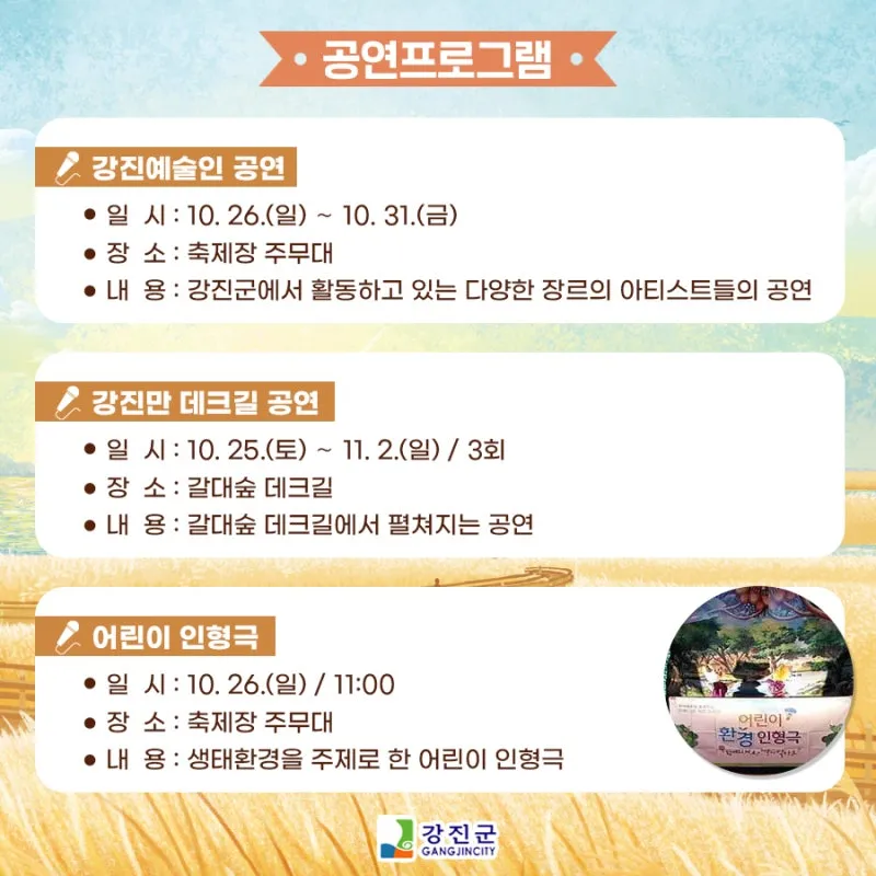 제10회 강진만 춤추는 갈대축제 공연프로그램