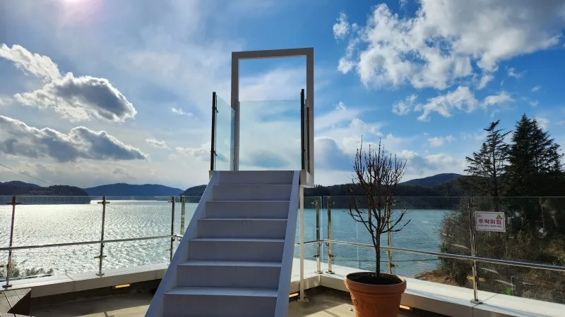 진양호 물빛갤러리는 1층 갤러리, 2층 카페, 옥상은 전망대로 이루어져 있습니다.