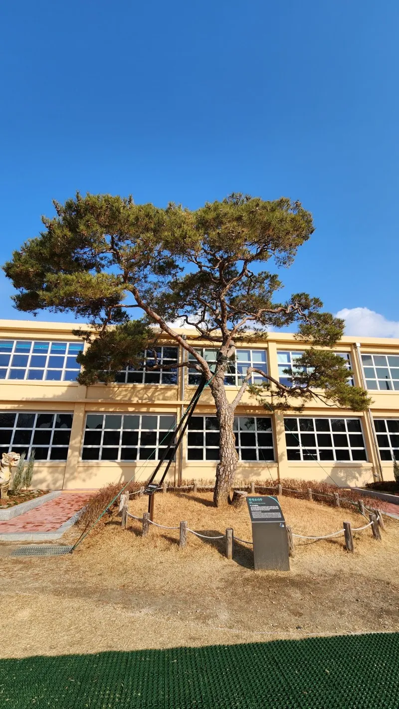 세 명의 재벌이 지수초등학교에서 심고 가꾸었다고 전해지는 부자 소나무는