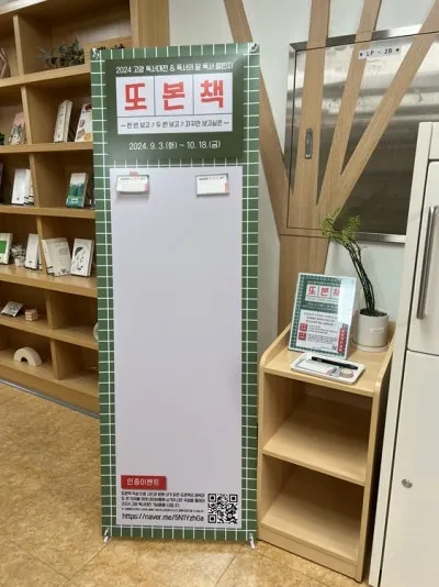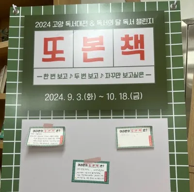 우선, 또본책 챌린지는 2번 이상 본 책을 추천하고 공유하는 것으로 도서관 현장에서 참여할 수 있어요. 챌린지 참여는 고양시의 모든 도서관에서 참여할 수 있는데 저는 한뫼도서관에서 참여했어요.