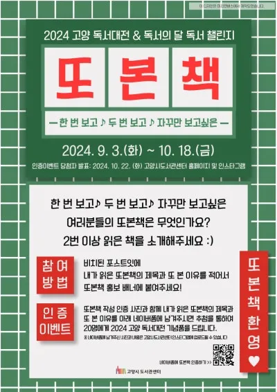 2024 고양 독서대전 챌린지 참여하고 독서의 계절 즐겨요. ✨