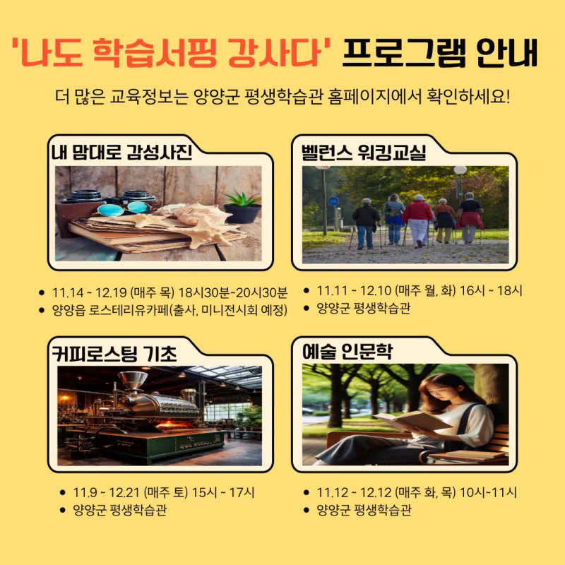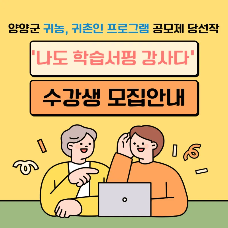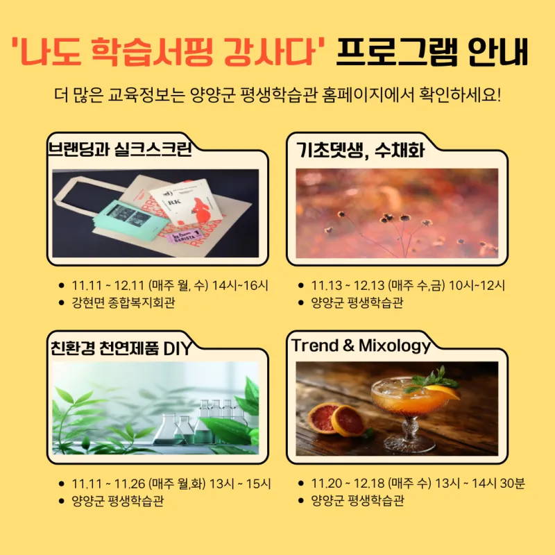 양양군, '나도 학습서핑 강사다' 평생학습 프로그램 수강생 모집