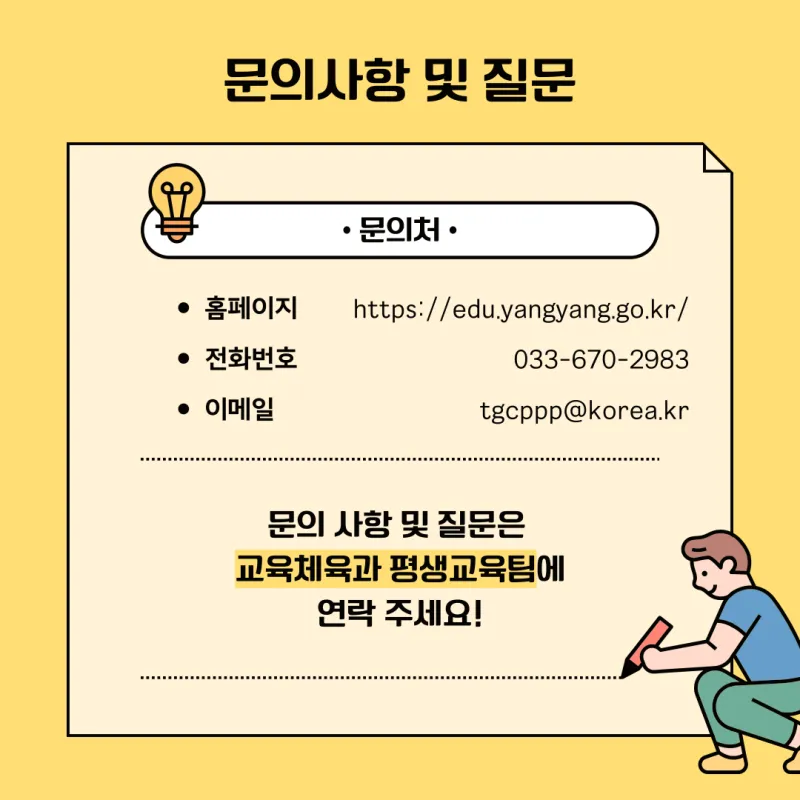 양양군청 교육체육과 교육체육팀을 방문하거나