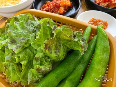 쌈장과 쌈채소, 콩나물국,