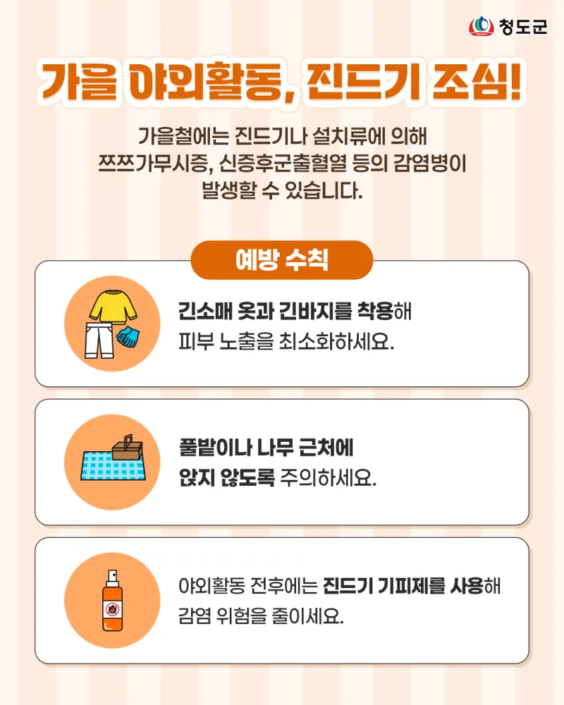 진드기 기피제를 사용해 감염 위험을 줄이세요.