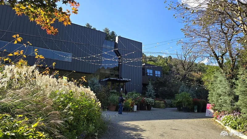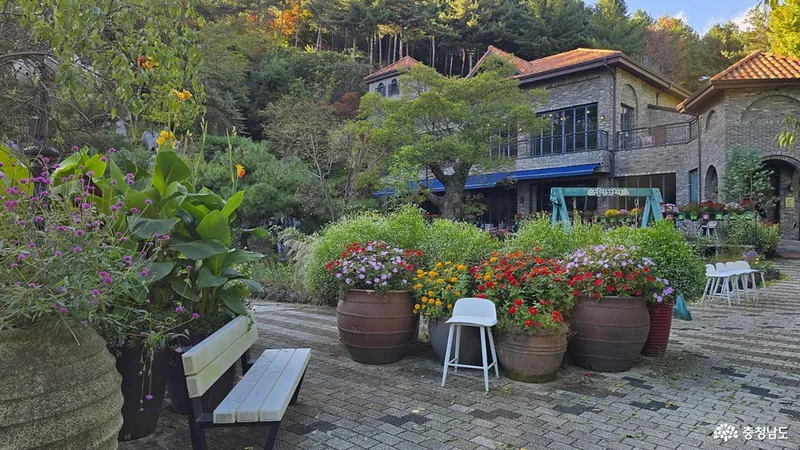매표소 앞에서 뒤돌아 보니 가을꽃으로 단장하고 있는 카페 베이커리 건물이 참 예쁩니다.