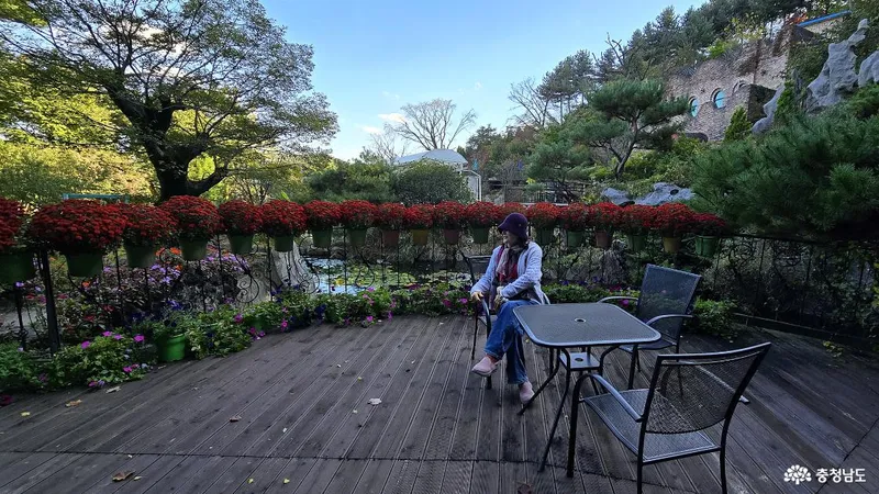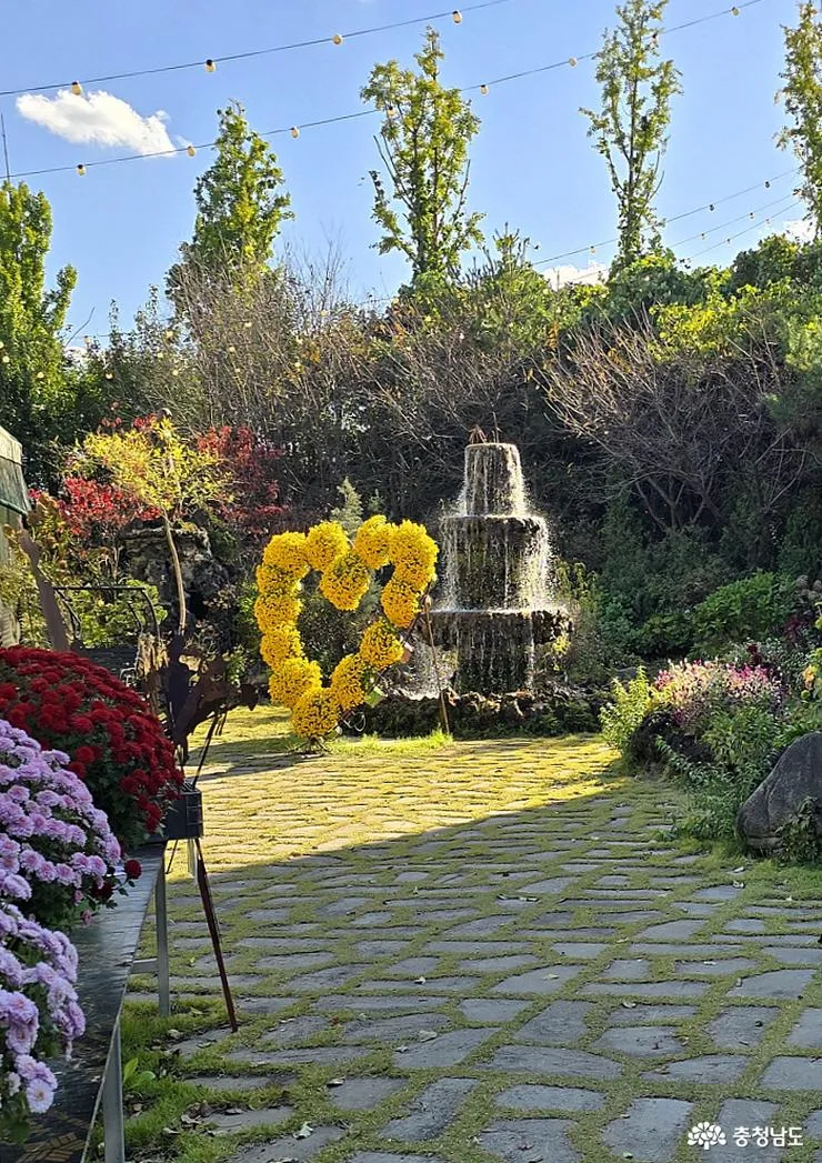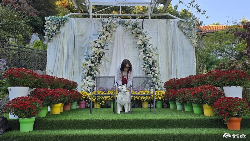 안으로 들어가면 야외 결혼식장이 있는데요, 국화꽃으로 예쁘게 꾸며져 있어요. 이곳에서 가든 웨딩을 하면 가을의 주인공이 되겠구나 하는 생각이 드네요. 할매! 주인공 한번 되어 보시겠수?