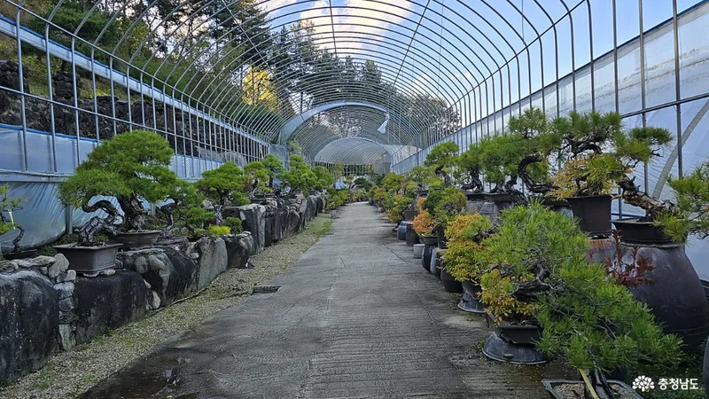 식당을 지나 분재원으로 가봅니다. 분재원 안에는 소나무를 비롯하여 여러 종류의 분재들이 기이한 형태를 자랑하고 있습니다.