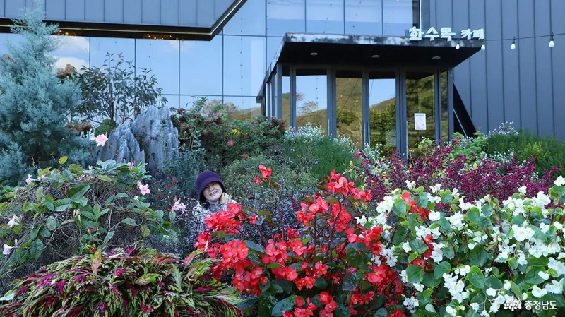 아름다운 정원 화수목은 충청남도 천안시 목천읍 교천지산길 175에 있는 대한민국 민간 정원 제1호입니다. 100m 인공폭포와 석부작 길, 탐라식물원, 명품 분재원, 테마정원 등의 다양한 힐링 공간과 레스토랑, 베이커리 카페 등 식사와 차도 가능한 곳이며 야외 가든 웨딩과 실내 연회 등도 가능한 곳으로 기업 워크숍 장소로도 인기가 높은 곳입니다. 천안 관광지 중 드물게 꽃으로 구성된 관광지이며, 365일 무휴로 운영되는 천안 가볼 만한 곳으로 손꼽히는 곳이기도 합니다. 가을 나들이 하기에 좋은 곳이어서 아내와 함께 다녀왔습니다.