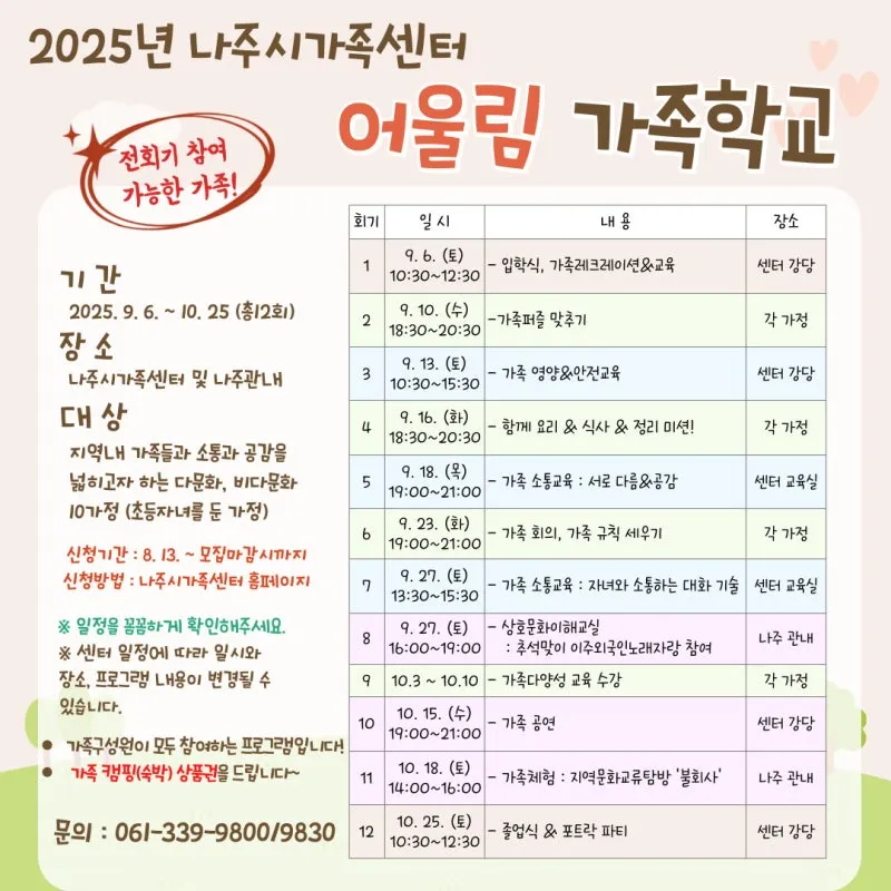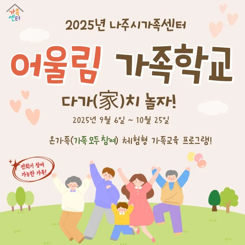 안녕하세요! 나주시가족센터에서 가을을 맞이해 준비한 2025 어울림 가족학교 소식을 전해드립니다.