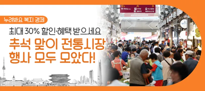 39개 전통시장 최대 30% 할인 (9.15~10.13)