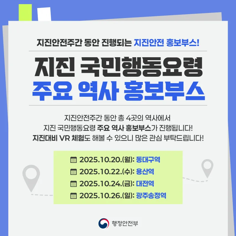 📍 지진안전주간 동안 진행되는 지진안전 홍보부스📍