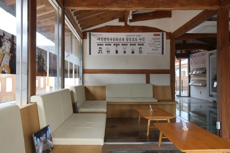 공주는 제민천거리에 활력을 불어넣어주기 위해 여행자들이 자유롭게 즐기고 쉬어갈 수 있는 "여행자 쉼터"를 조성했습니다. 출입카드 없이 누구든지 내부로 들어가서 잠시 쉬어갈 수 있으며, 기념품도 구매할 수 있습니다.