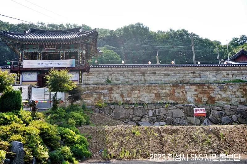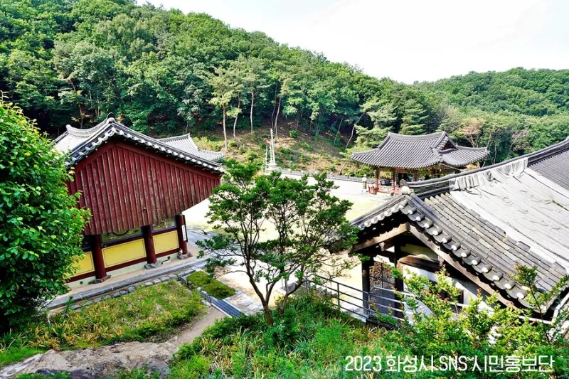 사찰은 무봉산 기슭에 석축을 쌓아 다진 담장 사이로 범종각이 있고 너른 마당을 따라 극락전, 설법전의 전각이 있습니다. 석축 아래로는 종무소 역할을 하는 요사채가 자리 잡았습니다. 아주 소박한 규모입니다.