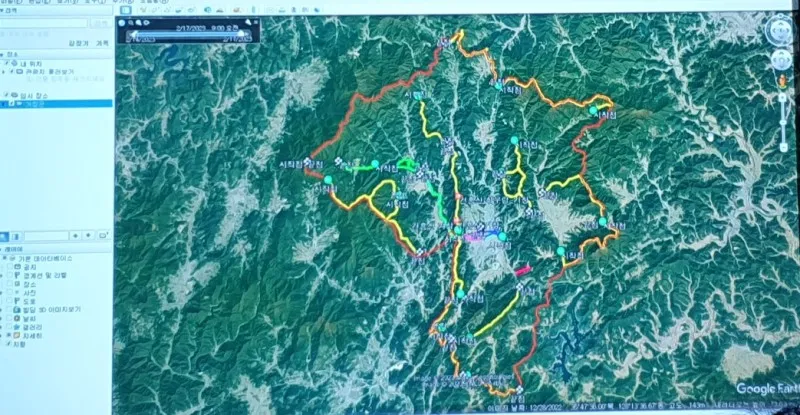 거창군 홈페이지 등에서 찾을 수 있는 트래킹길, 문화탐방로, 유적지등의 모든 길을 표시한 사진입니다. 안타깝게도 연결이 되지 않습니다. 연결되지 않는 길 ! 이것이 거창의 길의 한계이고, 우리가 완수할 과제이기도 한 것 같아요~~