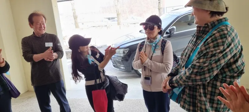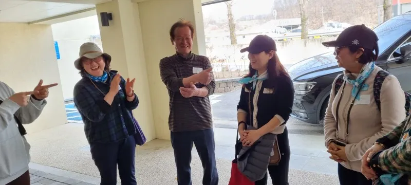 걷기의 마무리도 역시 라운드 미팅입니다. 둘러서서 소감나누기를 하고 다음 순서를 지목하는 이들의 얼굴이 웃음으로 가득합니다.