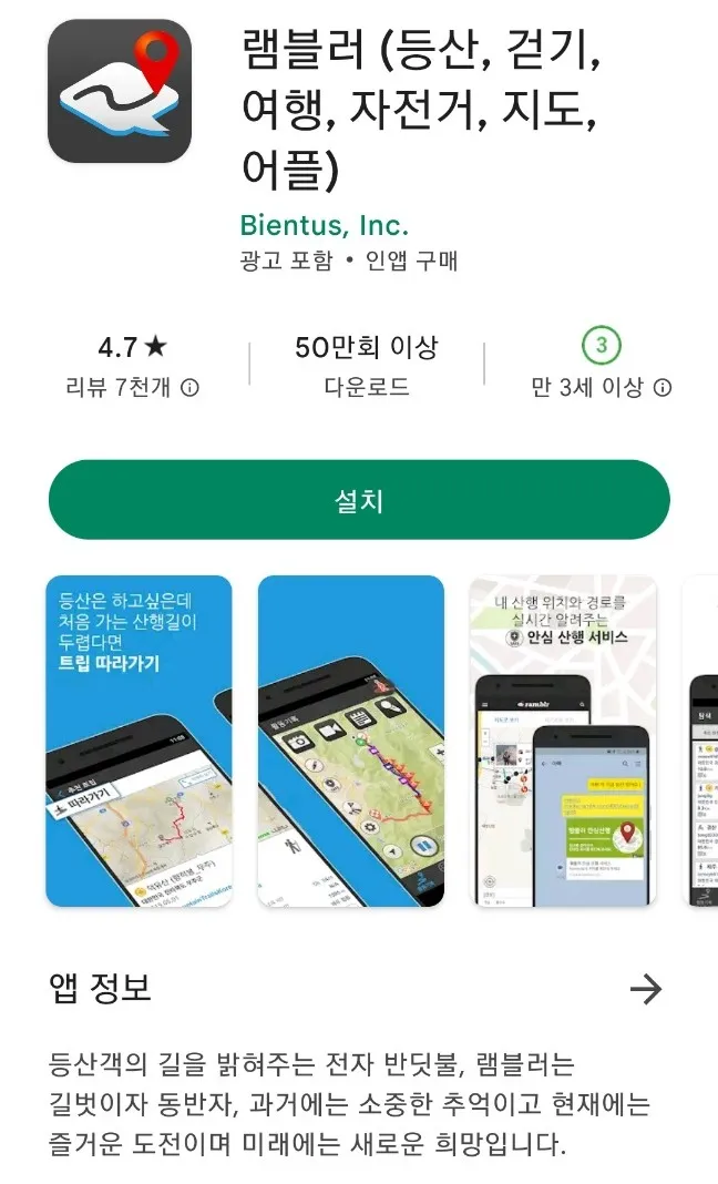 참, 길을 나서기 전, 램블러나 트랭글 같은 앱을 깔아 보세요...이 아이들은 걷기, 등산, 자전거, 해외여행 등 발길이 닿은 여정을 GPS기반으로 사용자의 위치를 실시간으로 추적, 기록해 주는 앱들인데요, 이 앱들을 활용하면 사진, 동영상, 메모, 녹음을 하여 스토리를 꾸미고 트립을 생성하게 해 준다고 해요...이 서버에 업로드된 기록은 자신이 이동한 거리, 기간, 속도, 고도 등이 나타나서 전 세계 사용자들과 공유할 수 있다고 하니 놀랍지 않나요~~부산 갈맷길 팀들이 최애 앱들이라고 하셔서, 저희 폰에 바로 장착하고 길을 나섰습니다...